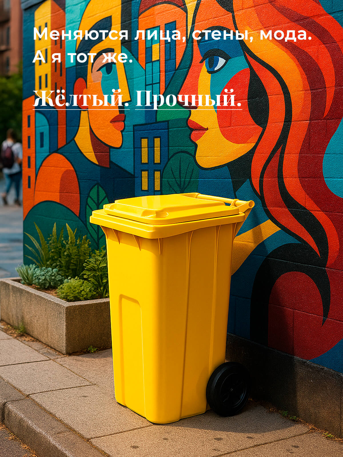 Если вам нужен долговечный контейнер для сбора мусора для эффективной организации отходов и раздельного сбора пластика, жёлтый вариант станет идеальным выбором. Он сочетает функциональность, прочность и высокую заметность.